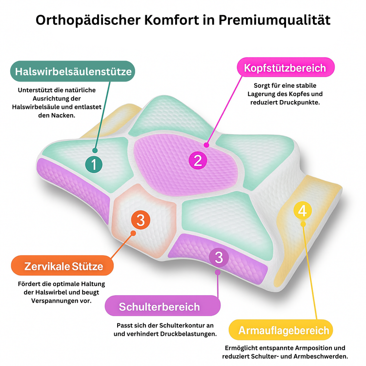 Adapts to your body: relieves pressure on the head and neck, straightens the spine.